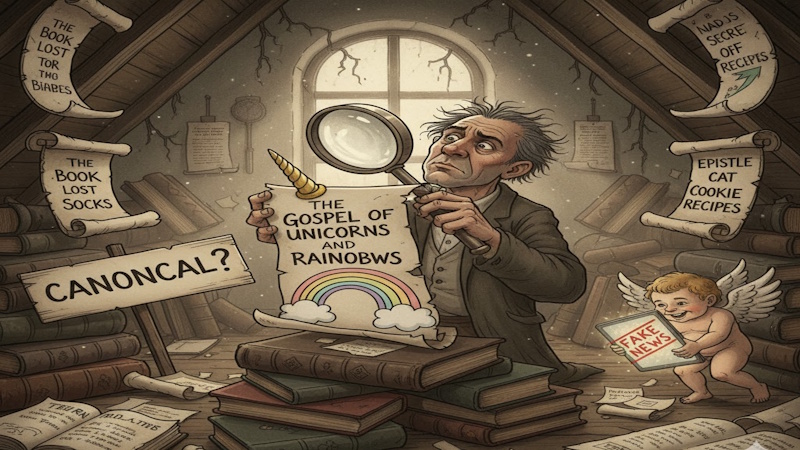 Se spune că istoria o scriu învingătorii. În cazul Noului Testament, o scriu cei cu consiliul ecumenic mai puternic. Undeva prin secolul IV, niște domni respectabili, în toga și cu aureolă de autoritate, au decis care texte sunt „canonice” și care… „meh”. Astfel, o parte din literatură a fost trecută la capitolul „apocrifă”, adică în traducere liberă: fanfiction teologic nerecomandat publicului general.