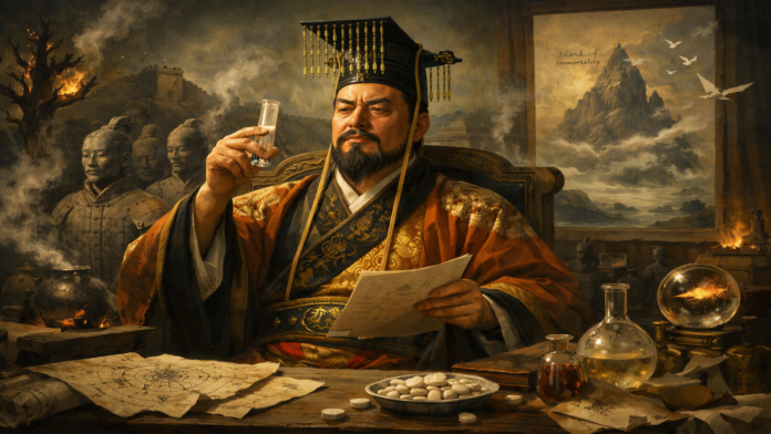 Qin Shi Huang a ajuns să înghită regulat substanțe toxice, convins că acestea îi vor asigura tinerețea veșnică. Practic, în timp ce cerea supușilor să respecte legi neînduplecate, își administra zilnic o otravă, tratată ca soluție tehnică la problema morții. Mercurul, considerat atunci un ingredient „nobil”, era văzut ca un aliat, nu ca un pericol. Rezultatul nu a fost nemurirea, ci accelerarea degradării. Ironia nu stă în credință, ci în consecvență: aceeași minte care voia o ordine eternă a ales, metodic, exact substanța care o făcea imposibilă.