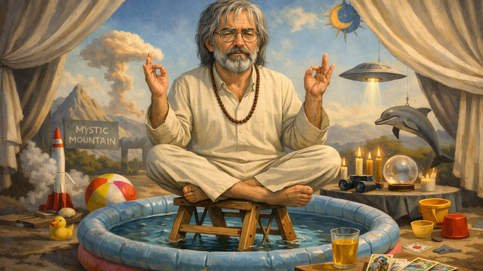 La Costinești, MISA a reușit să transforme litoralul într-un amfiteatru de metafizică practică: spirale tematice, cercuri de oameni care „trimit” ceva în infinit, în timp ce Gregorian Bivolaru clatină din cap ca un metronom al absolutului. Uneori obiectivele sunt cosmice (asteroizi, energii, cine mai ține minte), alteori sunt strict locale: chemarea delfinilor din larg, care, conform relatărilor, n-au confirmat invitația. Iar pentru cine simțea că iluminarea cere și un supliment alimentar, există și capitolul „urinoterapie”, promovată în broșuri unde urina devine „nectar divin”, savurat lent, cu privirea spre răsărit, eventual combinat cu miere sau suc de mere, ca să iasă și fericirea, și puterea, și strălucirea ochilor — totul cu o naturalețe care face orice laborator să pară timid. Așa ajungi să înțelegi „yoga integrală”: include și cosmosul, și plaja, și, la nevoie, propria producție zilnică.