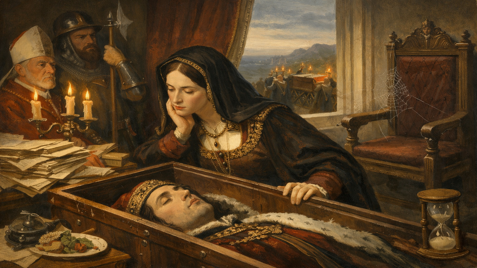 Ioana de Castilia a chemat curteni dimineața și i-a alungat înainte să vorbească. A cerut documente urgente și le-a împins deoparte fără semnătură. A acceptat o audiență și a ieșit din sală înainte de primul răspuns. A stat zile întregi închisă în cameră, cu ușile păzite. Când a revenit, a cerut din nou aceleași hârtii, ca și cum nimeni nu le adusese.