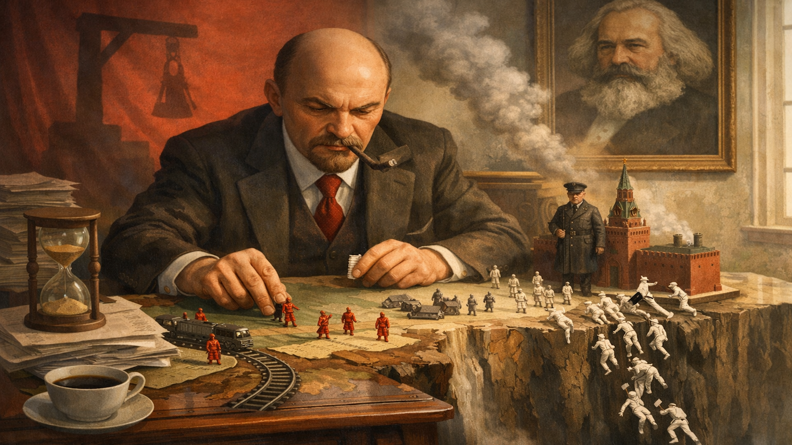 Lenin a refuzat să admită eroarea teoriei comunismului de război când economia s-a prăbușit, iar fabricile s-au oprit și schimburile au dispărut. A introdus Noua Politică Economică (NEP) ca „măsură temporară”, a redeschis piețe și a tolerat comerțul privat, fără nicio retractare publică a dogmei. A impus măsura pe teren și a păstrat discursul intact pe afișe, cu marxismul prezentat drept infailibil. A respins autocritica și a cerut loialitate doctrinară, în timp ce regulile se schimbau administrativ. Ideea a rămas neatinsă, realitatea a fost forțată să se adapteze.