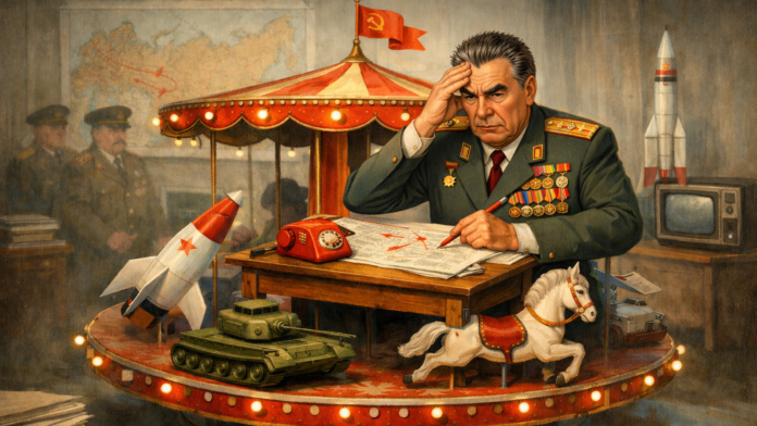 În anii ’70, sub Leonid Brejnev, statul a pompat resurse în industria de armament și a tratat restul economiei ca pe o anexă „care poate aștepta”. În timp ce fabricile pentru rachete și tancuri primeau prioritate, agricultura și bunurile de consum rămâneau cu investiții slabe, iar rezultatul se vedea în penurie și în cozi pentru produse de bază. Pentru omul obișnuit, „măreția” imperiului nu venea în plus la salariu sau în spital mai bine dotat, ci în rafturi goale și servicii publice tot mai obosite. Așa arată rătăcirea: un regim care numără victorii industriale în tone de oțel militar și apoi se miră că oamenii nu pot mânca ordine și decorații.