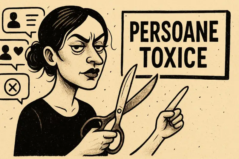 „Am tăiat persoanele toxice din viața mea.” Postarea e imaculată. Poză cu foarfeca, citatul, hashtag-ul mamalespeMine. În timp ce mândria curge, privirea evazivă evită o simplă întrebare: care o fi contribuția mea? E mai lesne să declari: „era o persoană toxică”. Asta îți curăță curriculum-ul moral în două fraze și te face să pari tu victima, în ochii lumii naive. Chiar dacă tu ești călăul care se victimizează, chiar dacă tu ești persoana toxică.