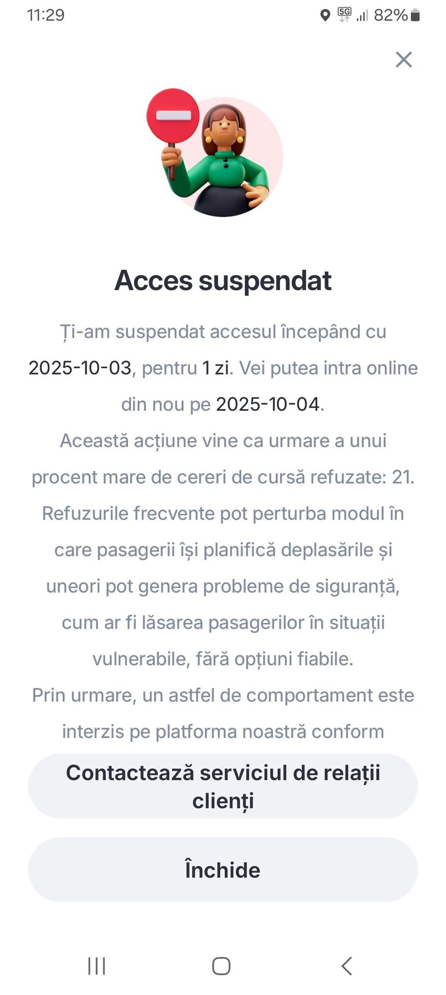 Șoferii profesioniști, pe care ținem să-i apreciem cu 5 stele, fac ca serviciul să funcționeze impecabil. Mașina este curată, miroase discret și plăcut, muzica este la un volum adecvat (sau inexistentă), iar conversația nu este intruzivă, ci educată și cu bun simț. Sunt eleganți, politicoși și, cel mai important, sunt concentrați pe singurul lor scop: să te ducă din punctul A în punctul B în deplină siguranță și confort, respectând toate regulile de circulație și, mai ales, spațiul tău personal. Ei sunt coloana vertebrală a acestui serviciu, iar meritul lor este, adesea, subestimat.