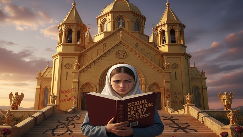 În România anului 2025, dacă o adolescentă are curajul să vorbească despre viața sexuală, e amenințată că o dă tata afară din casă sau că o taie în bucăți „de rușinea neamului”. Între timp, la slujbă, același tată își face cruce cu evlavie și mai dă un share la o postare despre „decăderea morală a Occidentului”. Fetițele încă se sperie când le vine menstruația, pentru că nu le-a spus nimeni nimic. E tabu, e rușine, e „nu se vorbește despre asta”. În schimb, despre „smerenie” se vorbește cât pentru toate generațiile viitoare.