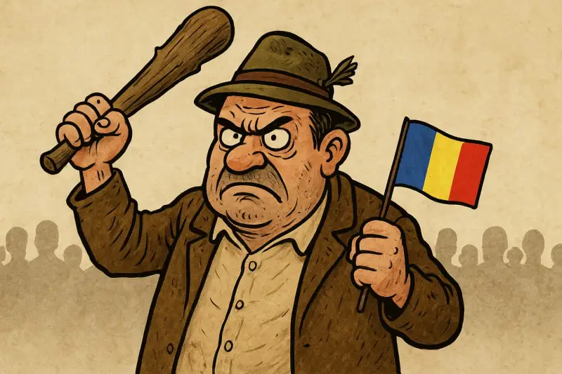 În mintea lui, patria e o icoană din plastic, iar dragostea de țară se manifestă prin înjurături la adresa oricui pronunță un cuvânt care nu sună românesc. Dacă aude un accent, tresare ca la un cutremur. Dacă vede o piele mai închisă, apucă tricolorul și-l învârte ca pe o armă sfântă.